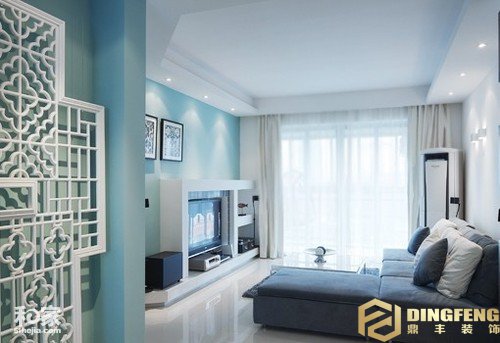 推薦2:藍(lán)色的墻面清新淡雅,搭配碎花復(fù)古地毯別有一番風(fēng)味,可以讓整個空間有一種混搭的時尚感。
