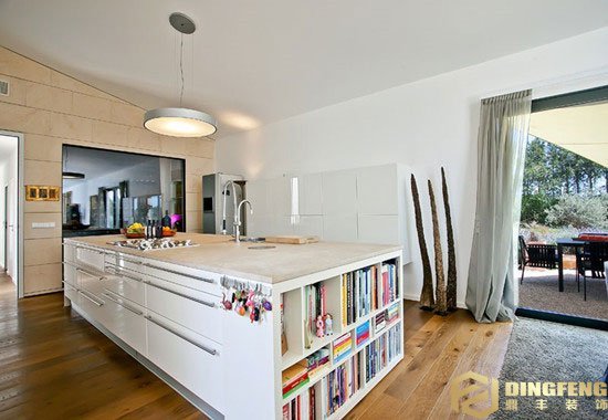 將廚房做成開敞式空間,和早餐臺、吧臺結合在一起,增加了實用性,減少了空間浪費,使小戶型的住宅也具有完備的實用功能,“I”字形的廚房布局,是指所有的工作區沿一面墻一字形布置,給人簡潔明快的感覺。這是在走廊不夠寬、不能容納平行式設計的情況下經常采用的方法。