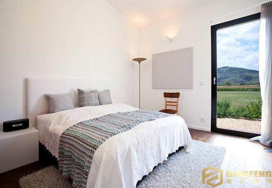 不一樣的色彩搭配會產生不一樣的空間效果,確實給人更好的氛圍感受,這間臥室是為了那些大多數時間都在外工作的白領而設計的,所以,設計以大片的白色調為主,求簡潔,避免凌亂,要讓這間臥室很容易清潔、整理。