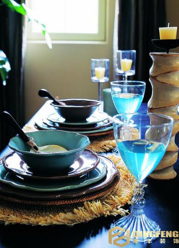 餐桌的擺放決定了餐廳的氣氛,灰度的暗色組合中搭配溫暖柔和的清新色彩,仿佛是灰色城市上空一束沖破云層的明媚光線,使空間中流淌著雅致、豐富的溫暖格調(diào)。光線可以讓居室空間更加明亮,配飾更是不容忽視的重點,燈飾、花卉、燭臺不同色彩與質(zhì)感的融合,調(diào)劑家居視覺與感覺的平衡。