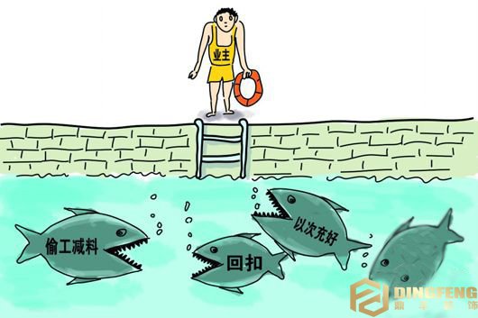 一位不愿透露姓名的裝修業內人士則表示,除非是單身公寓,100平方米左右的套房2米的整體櫥柜根本就不夠用,業主必然要多出此項費用。而更讓王先生納悶的是,這樣的套餐不包含水電預算、砌墻抹灰、地面找平、管道防水等基礎項目,王先生的新居里沒有隔墻,該裝飾公司首席設計師表示,水電預收需9700元,砌墻抹灰需4000元,地面找平則要加收1500元,管道防水增加1200元。在這份裝修估價單上,除了97平方米建筑面積產生的套餐總價37636元之外,還有包括水電預收等額外費用24900元、垃圾清理費等其他費用1455元、管理費5119元,總價達69110元,等于在套餐之外,業主王先生還需多出31474元。在采訪過程中,該裝飾公司首席設計師說了這么一句話,“如果業主要求砌墻、水電預算,388元/m2根本辦不到。”